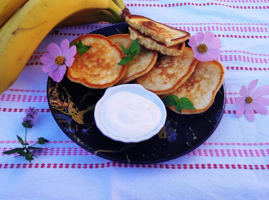 Дополните оладьи сметаной, джемом или сгущенкой и подавайте к столу. Очень вкусно с чаем или молоком. Приятного угощения!