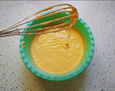 По количеству муки ориентируйтесь, гладя на консистенцию готового теста. Оно должно быть немного густое. Оно, как бы, пытается держать форму, но в итоге медленно растекается. Готовому тесту дайте постоять 2-3 минуты.