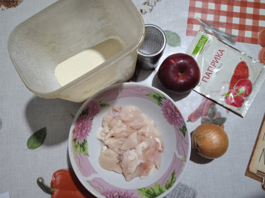 Калорийность продуктов: Куриное филе, Лук, Яблоки, Манка, Паприка, Соль