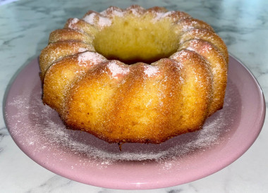 Когда верхний слой кекса слегка подрумянится, проверьте его на готовность: проткните деревянной шпажкой в нескольких местах, если шпажка выйдет сухой, значит форму можно доставать из духового шкафа. Дайте кексу остыть в форме. Затем аккуратно выньте и посыпьте сахарной пудрой.