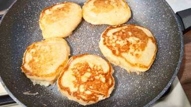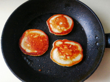 8. Шаг 8. Как жарить пышные оладьи на дрожжах на сковороде?