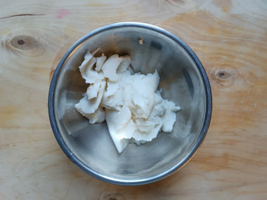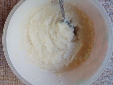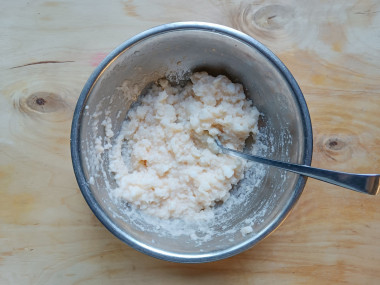 Тщательно перемешайте густую манную массу с яйцом. Дайте каше полностью остыть, после чего она станет очень густой и плотной.