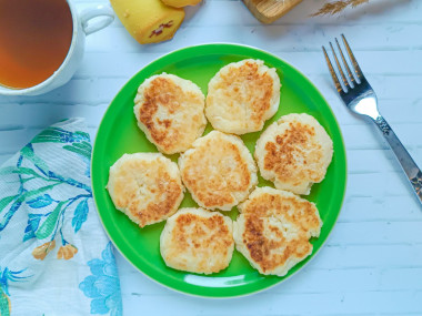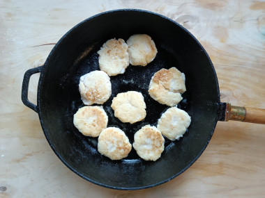 Манники сформировала и обваляла в манной крупе. С самого начала приготовления накрыла сковородку крышкой, а не в конце как рекомендовал автор рецепта. А потом обжаривала с двух сторон до румяной корочки.