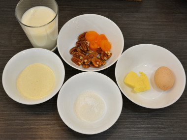 Как варить классическую гурьевскую кашу? Подготовьте ингредиенты. Молоко возьмите самое жирное, в идеале — деревенское. Сливочное масло выбирайте качественное, без добавок, соответствующее ГОСТу. Орехи подойдут любые, можете взять их смесь. Кроме кураги, можно использовать изюм, клюкву, чернослив или смесь сухофруктов.