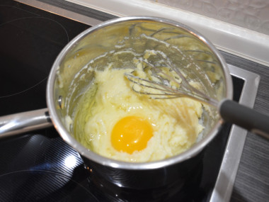 Яйца помойте и оботрите. По одному вбейте их в кашу. Хорошо перемешайте после каждого.