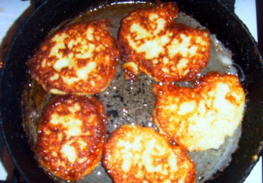 Оладьи получаются аппетитного золотистого цвета. Кабачки прожариваются очень быстро.