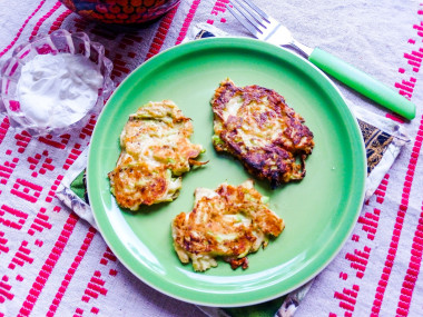 Заинтересовал меня рецепт оладьев кабачковых с сыром и чесноком. Я люблю кабачковые оладьи и в сезон кабачков часто их готовлю, но вот с сыром не делала ни разу.
