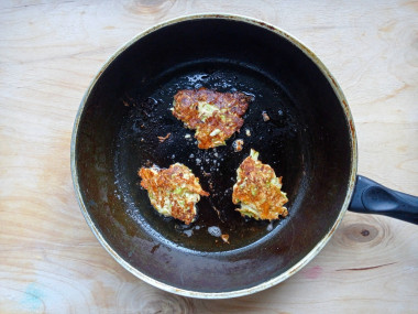 Сковороду для жарки разогрейте до горячего состояния и налейте на неё немного растительного масла. Ложкой выкладывайте немного кабачкового теста и обжаривайте оладьи на небольшом огне с двух сторон.