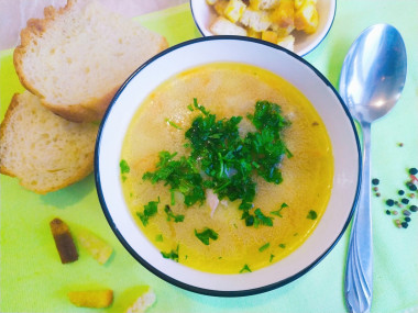 Я взяла плавленный сырок, который придал супчику приятный сливочный вкус, ещё добавила две картофелины для более густой консистенции и сытности.