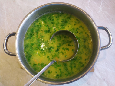 В конце варки бросила нарубленную петрушку, подавала на стол с домашними сухариками, получилось очень вкусно и насыщенно, всем советую)