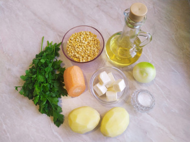 На обед сделала суп гороховый с сыром, мне понравилось, что его рецепт очень прост в приготовлении и быстрый по времени.