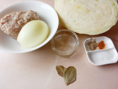 Как потушить капусту с фаршем в мультиварке? Подготовьте продукты. Фарш можете взять готовый или же сделать его самостоятельно дома. Он может быть из любого мяса или птицы, у меня смешанный из говядины и свинины. С ним блюдо получилось более жирное и сочное. Если вы хотите, чтобы обед был менее калориен, то возьмите куриный фарш. Набор специй выбирайте по своему вкусу, я использую перец, черный и душистый, и лавровый лист.