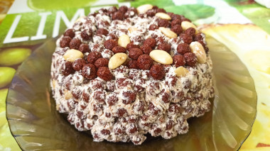 Торт из шоколадных шариков покорил сердца моих сладкоежек! Теперь я знаю как еще можно применить готовые сухие завтраки. Масло для тортика я брала жирное - 85%. Крем получился густым, шарики не раскисли в нем. Из орешков я взяла арахис. Вообще дума сюда вообще любые орехи подойдут. Получилось очень вкусно, с горячим сладким чаем самое то! Долго этот десерт у нас дома не застоялся.