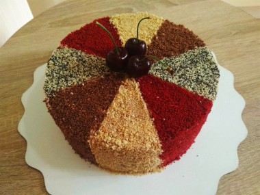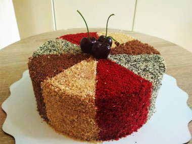 7. Для украшения бока и верх торта украсьте двухцветной крошкой. Поместите торт для пропитки в холодильник на 6-8 часов, лучше на ночь.