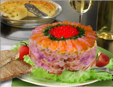 Сочетание красной рыбы и икры в одном блюде — классика русской застольной культуры, символ богатства и щедрости.
