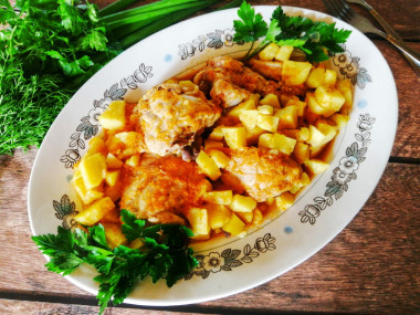 А у кого казана нет, может приготовить куриные колени с картошкой в духовке вот по такому рецепту. Будет тоже вкусно!