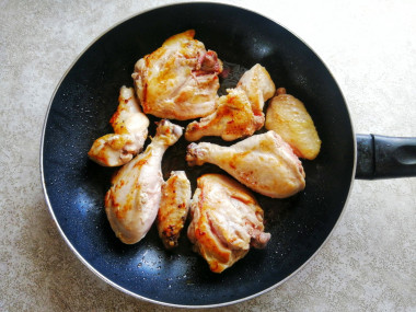 Курицу вымойте и обсушите. Если используете целую курицу, ее нужно нарезать на порционные куски. Я использовала голени и бедрышки. Если бедра очень крупные, то их лучше разрезать пополам.