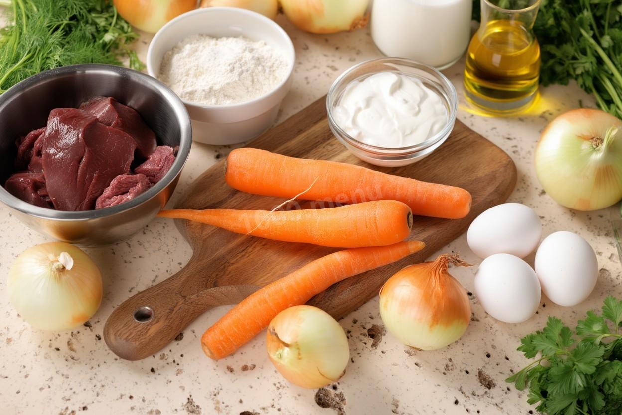 Подготовьте все необходимые ингредиенты. Говяжью печень можно заменить на любую другую по вкусу.