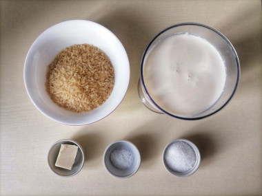 Калорийность продуктов: Молоко, Круглый рис, Сахар, Соль, Сливочное масло