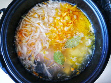 Включите программу "Суп", по времени примерно 1 час. Точное время и программа будут зависеть от особенностей работы вашей мультиварки. Ориентируйтесь по инструкции к вашему прибору. У меня мультиварка-скороварка, мне хватило 20 минут. Подробнее о мультиварке можно прочитать в конце рецепта.