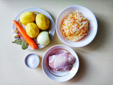 Из всех ингредиентов у меня не было ячневой крупы, не добавляла в щи ещё и перец горошком. Лавровый лист положила для аромата.