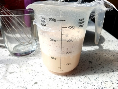 Молоко я подогрела до 37°С, в теплой среде хорошо подходят дрожжи. Остальные продукты добавляла по очереди. Яйца достала из холодильника заранее, чтобы они стали комнатной температуры. Муки у меня ушло примерно на 100 г. больше. Муку обязательно просеиваю, чтобы насытить ее кислородом.