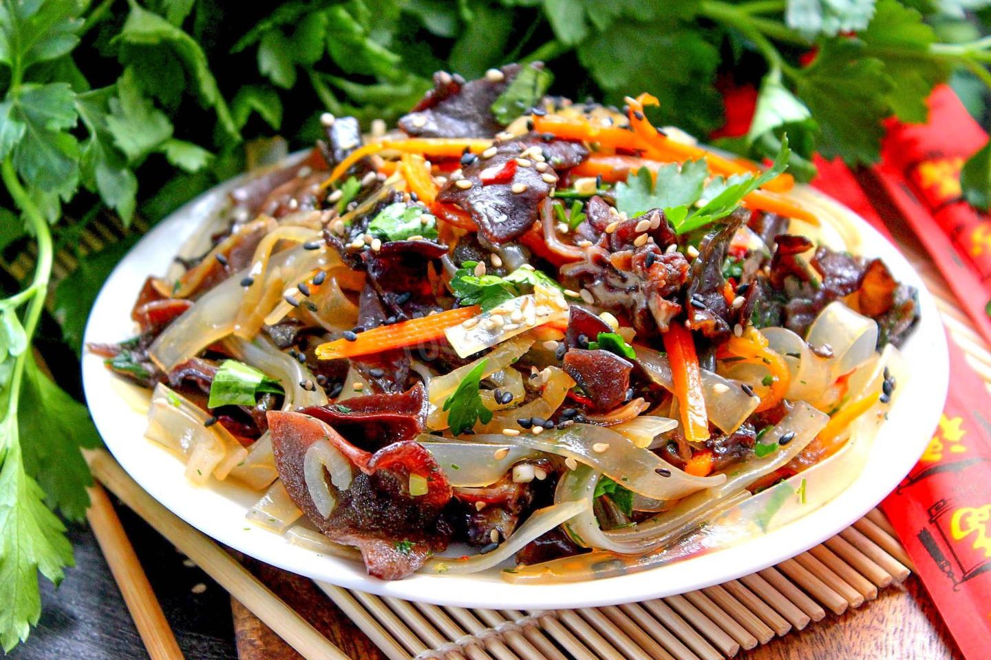 Очень просто! Первым делом подготовьте все необходимые продукты по списку. Помимо соевого соуса для салата можно использовать острый или кисло-сладкий китайские соусы. С ними вы получите более насыщенный и яркий вкус готового блюда.Шаг 2. Как подготовить древесные грибы для салата?