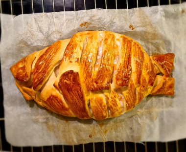 Передний край теста заверните друг на друга, формируя голову рыбы.