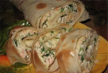 Предложу вариант рулета из лаваша - цезарь ролл с курицей без майонеза. Сытный перекус.