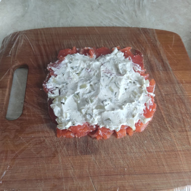Шаг 5. Как правильно свернуть красную рыбу с начинкой в рулет?