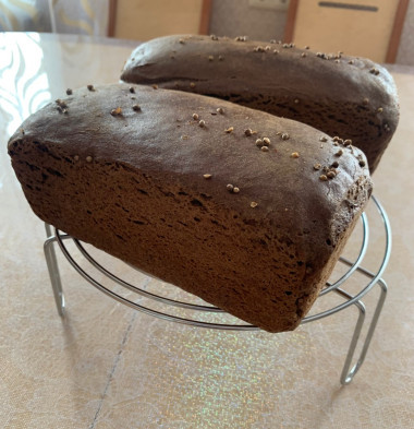 Всем добро дня! Впервые попробовал испечь ржаной хлеб! Все получилось как нельзя лучше. Хлеб очень вкусный. Немного изменил количество порций, увеличил до 10, для того что бы получить две буханки (формы у меня Л-7). Тесто получилось упругое, но немного прилипало к рукам. Все ингредиенты перевел в граммы и миллилитры и все в точности отвешивал и наливал. В одну форму вошло по 590 грамм теста. Расстаивал тесто немного дольше, около двух часов. Рецепт всем рекомендую. Большое спасибо за рецепт!