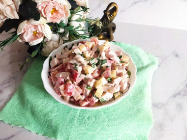 Хороший салатик, спасибо. С копченой курочкой можно приготовить и такой салат с добавлением морковки по-корейски.
