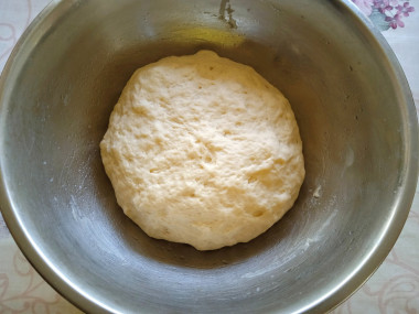 В этом рецепте тесто оставляется в теплом месте на 20-30 минут, уже разделанное на заготовки-пампушки (шаг 2). За это время они немного поднимутся.
