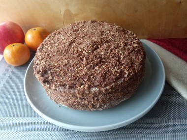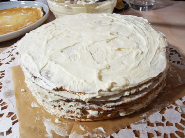 Складывая коржи друг на друга и промазывая кремом, соберите весь торт.