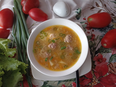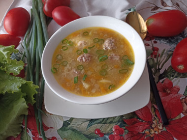 К обеду приготовила гороховый суп с фрикадельками. Мне нравится , когда горох в супе полностью разварен, поэтому замачиваю его подольше ( на ночь). Фарш использовала смешанный ( свинина -говядина). Супчик получается замечательный: наваристый, сытный, аппетитный. Спасибо автору за рецепт!