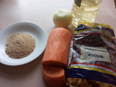 Для приготовления фасолевых котлет приготовьте ингредиенты. Фасоль нужно замочить на ночь, чтобы она хорошо разбухла. Использовать можно абсолютно любую фасоль: красную или белую, по наличию. Цвет на качество котлет не влияет. Панировочные сухарики можно приобрести в магазине или через кофемолку намолоть из обычных хлебных сухарей.