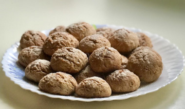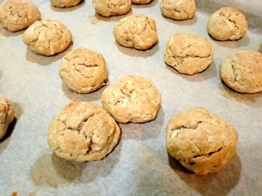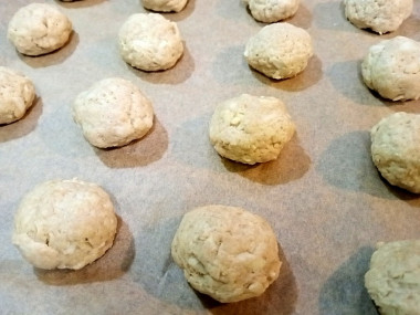 Шарики удобно скатывать влажными руками. Я это делала быстро, чтобы тесто не затягивалось. Вышло 19 штучек размером чуть больше грецкого ореха.
