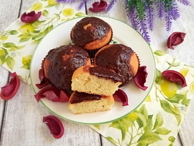 Пошли мы с дочкой в гости, а с собой взяли испеченные мною кексы с шоколадной начинкой. Тесто для них я замешивала согласно инструкции, только сахара взяла в два раза больше. Тесто получилось похожим на густой, воздушный крем.