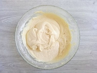 Взбить тесто миксером в однородную пышную массу.