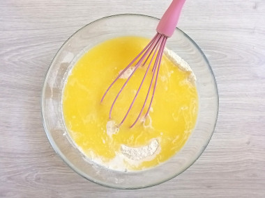 Влить растопленное сливочное масло Добавить яйцо и молоко.