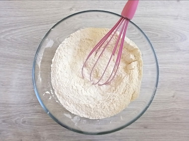 Соединить муку, сахар, ванильный сахар, разрыхлитель и соль.