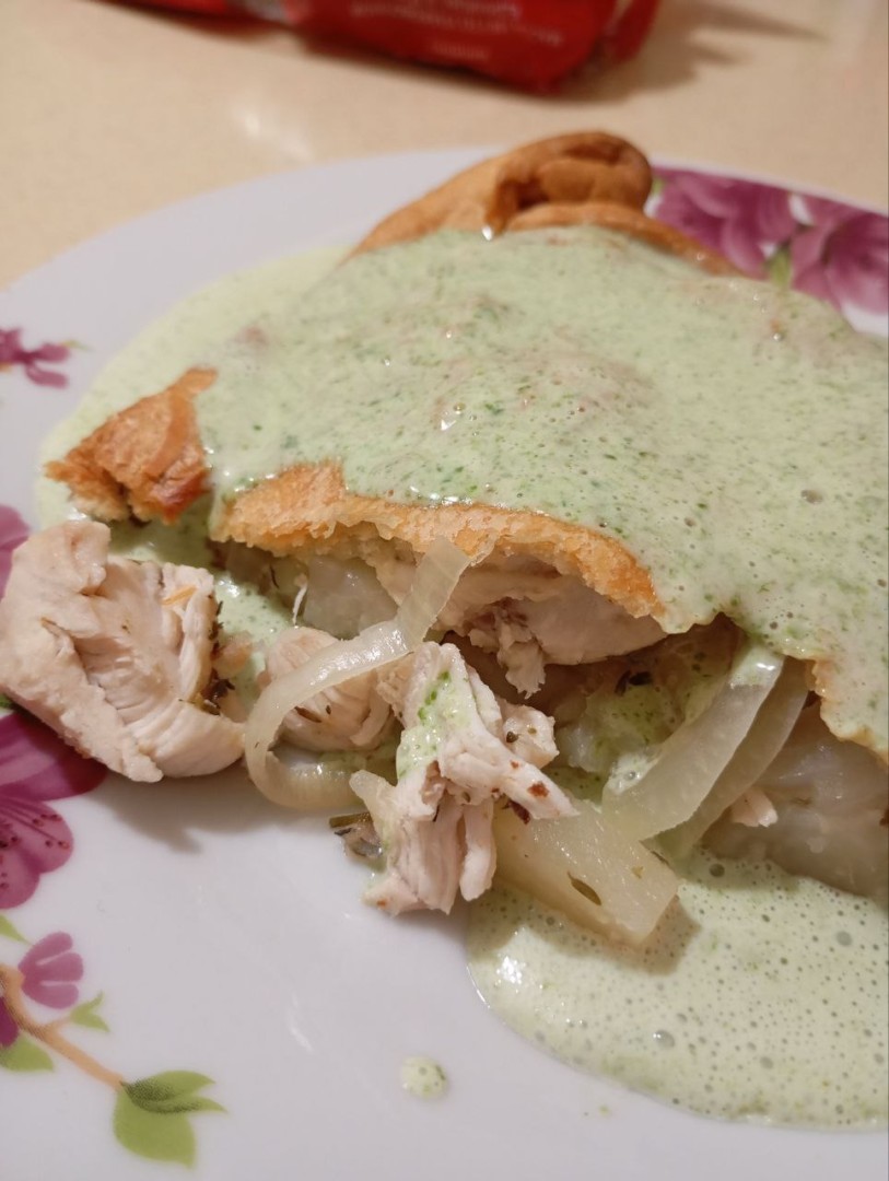 Многого не ожидала, так как особо шпинат не люблю, да и в пироге сочетание ингредиентов более-менее классическое. Но поскольку интересно пробовать разное - взялась. Позволила разве что одну вольность - шпинат в соусе дополнительно измельчила блендером, дополнила белым перцем. Отдельно по запаху и вкусу соус напомнил сыры с голубой плесенью, что для меня всё-таки резковато, но вот в сумме с пирогом получилось удивительное сочетание, резкость сразу ушла. Спасибо за рецепт, очень понравилось!