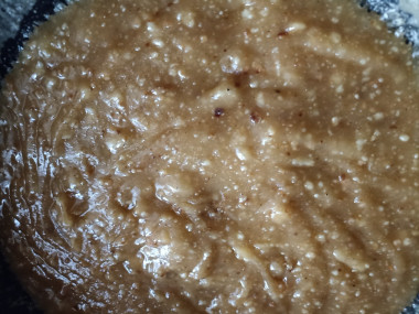 Как только мука изменила цвет, налейте в сковороду подготовленный ранее сироп. При этом интенсивно все перемешивайте. Держите смесь на огне, не переставая мешать, до тех пор, пока лакомство не достигнет нужной вам консистенции. Оно может быть жидким — в этом случае разлейте его в пиалы. А может быть густым — тогда нарежьте его кубиками. Я предлагаю приготовить его густым.