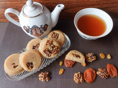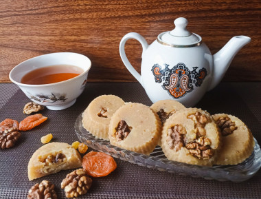 Попробовала приготовить узбекские сладости. По совету автора курдючный жир заменила топленым маслом. В сотейнике сварила сахарный сироп, муку обжарила на топлёном масле, затем обе массы соединила и проварила вместе до загустения, полученную массу выкладывала в силиконовые формочки, на дно которых положила обжаренные половинки грецких орехов. Получилась интересная восточная сладость. Для полноты вкуса я бы добавила либо к сиропу либо в муку щепотку соли. Рецепт беру в копилочку, как базовый, в следующий раз добавлю в массу побольше разных орехов и семечек, изюм. Будет ещё вкуснее! Спасибо автору за рецепт!
