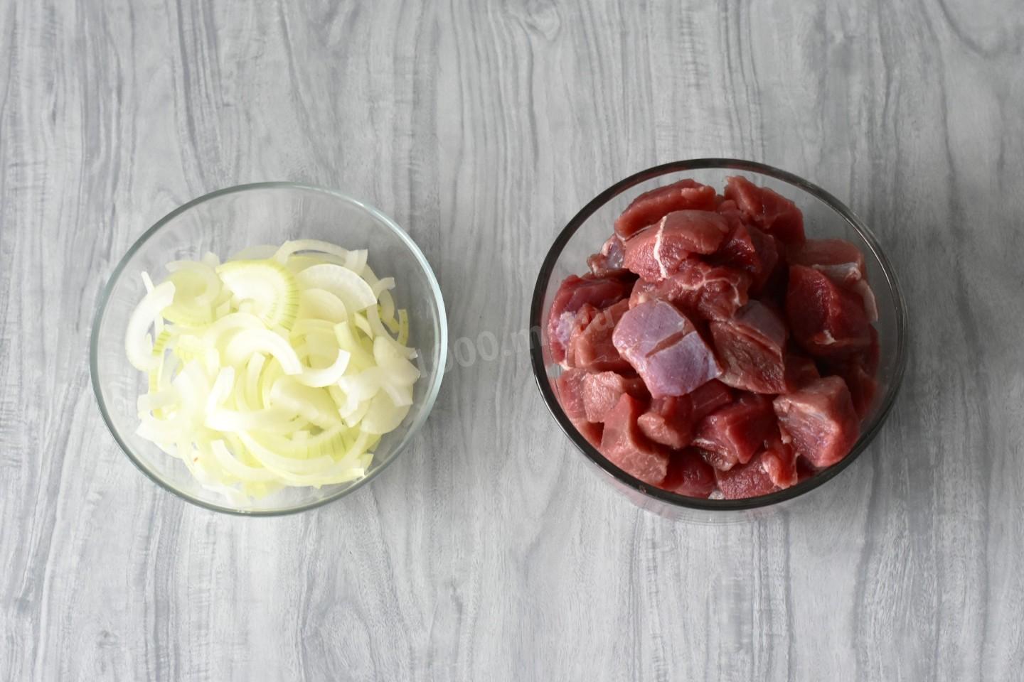 Шаг 2. Как подготовить лук и мясо к обжариванию?