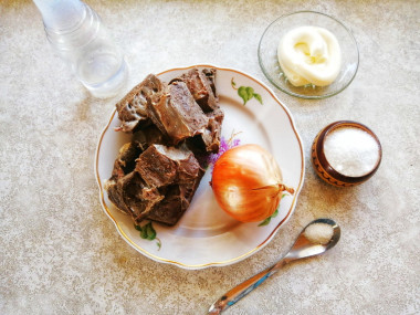 У меня осталось свиное сердце, приготовленное в скороварке, нужно было что-нибудь из него сделать. Нашла на сайте рецепт приготовления свиного сердца с луком.