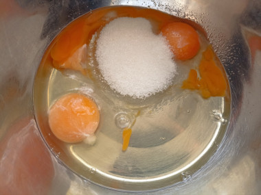 Насыпьте сахар, добавьте щепотку соли и снова взбейте.Шаг 4: