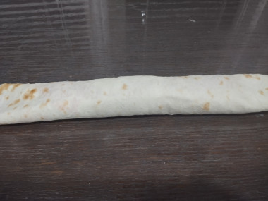 Очень аккуратно сверните лаваши в рулет. Сильно не давите, чтобы не вытекла начинка.