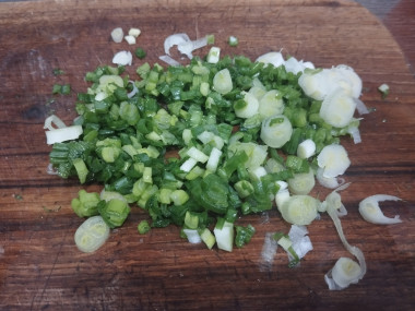Репчатый лук очистите и нарежьте небольшими кубиками. Если вы не любите резкий вкус лука, то можете на минуту залить его кипятком, а после слить воду. Это поможет сделать вкус лука мягче.