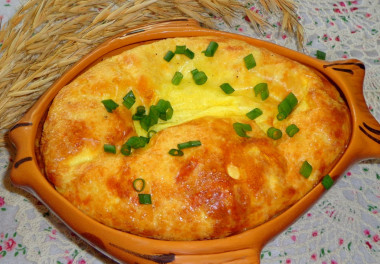 Воздушный и очень нежный омлет, идеален для завтрака! Его можно запекать в небольшой стеклянной или глиняной посуде. По моему мнению, для омлета лучше использовать сыр твердых сортов. Его можно добавлять как в яичную массу, так и посыпать сверху. Я готовила его недолго, до румяной корочки. А к столу его можно подавать с колбасой, бутербродом, помидорами или с другими овощами.